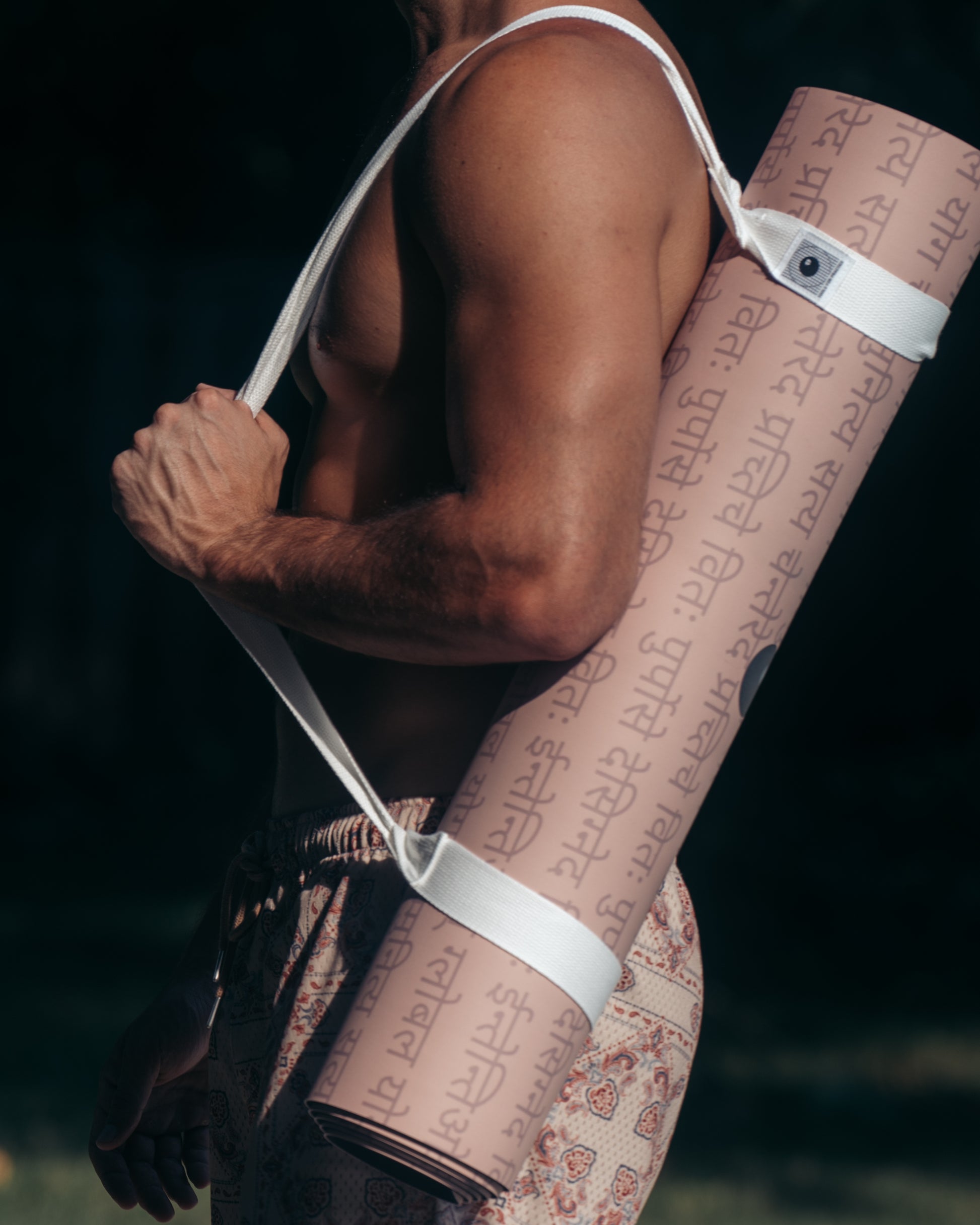 A yoga mat with a Sanskrit design features intricate patterns and symbols inspired by ancient Indian Mantras. These designs not only add a touch of cultural richness but also serve as a reminder of the deeper spiritual aspects of yoga. The mat is made from high-quality, non-slip materials, offering both comfort and durability, making it perfect for all types of yoga practices.